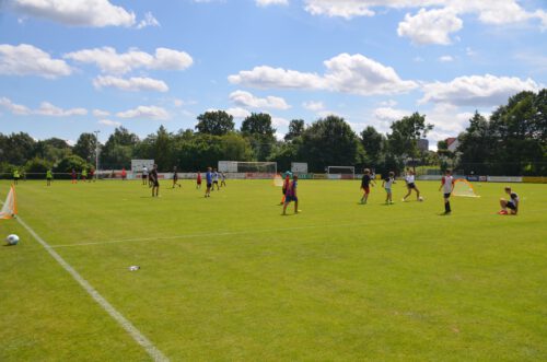 Unter der Leitung von Jugendorganisator Christian Griener starteten am Samstagmorgen um 8:30 Uhr 45 Kinder ab dem Jahrgang 2006, von den C‑Junioren bis zu den Jüngsten, der G‑Junioren des Jahrgangs 2018, zu einem sportlich-gesellschaftlich herausfordernden aber auch die Gemeinschaft und Kameradschaft stärkenden Sporttag. Vormittags waren die Kinder beim Ballartist-Wettbewerb gefordert und mit vollem Eifer dabei. Alle Mädchen und Jungs mussten einen Fußballkurs mit zwei Runden a‘ sechs Stationen absolvieren und fleißig Punkte sammeln. Die SV-Nachwuchsspielerinnen und ‑spieler zeigten ihre Dribbelkünste auf einem zu meisterten Ballparcours, das Kurspass-Ass und der oder die Kopfballkönig(in) wurden gekürt. Aber auch der beste Flankengeber und Elfer-König ermittelten die Betreuer akribisch. Einen pfeilschnellen Schlusspunkt setzten die Kinder beim Ermitteln des Geschwindigkeits-Asses, das bei der Radarmessung mit der Anlage der SV-Fußballabteilung hundertstelgenau gemessen wurde.