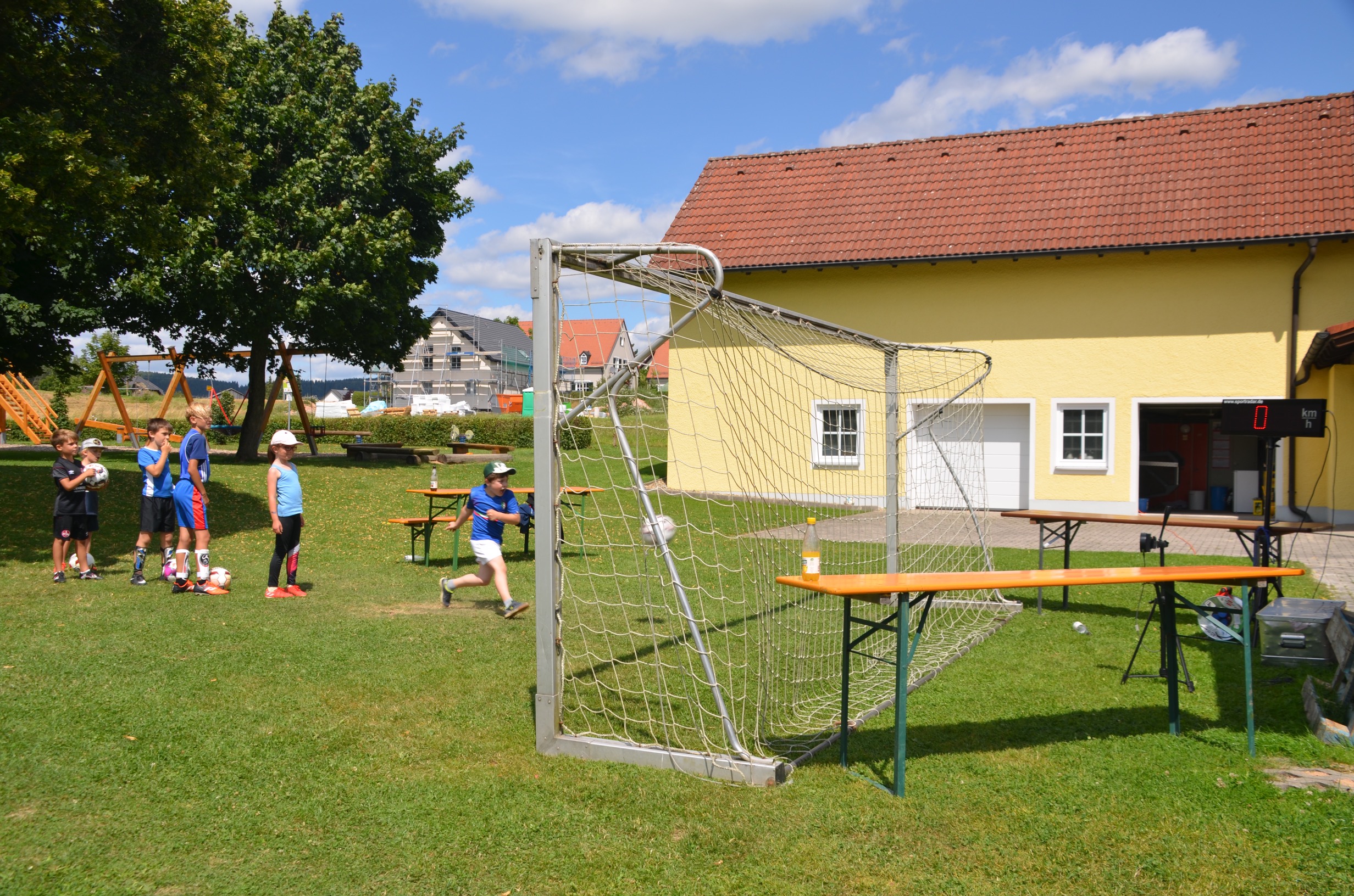 Unter der Leitung von Jugendorganisator Christian Griener starteten am Samstagmorgen um 8:30 Uhr 45 Kinder ab dem Jahrgang 2006, von den C‑Junioren bis zu den Jüngsten, der G‑Junioren des Jahrgangs 2018, zu einem sportlich-gesellschaftlich herausfordernden aber auch die Gemeinschaft und Kameradschaft stärkenden Sporttag. Vormittags waren die Kinder beim Ballartist-Wettbewerb gefordert und mit vollem Eifer dabei. Alle Mädchen und Jungs mussten einen Fußballkurs mit zwei Runden a‘ sechs Stationen absolvieren und fleißig Punkte sammeln. Die SV-Nachwuchsspielerinnen und ‑spieler zeigten ihre Dribbelkünste auf einem zu meisterten Ballparcours, das Kurspass-Ass und der oder die Kopfballkönig(in) wurden gekürt. Aber auch der beste Flankengeber und Elfer-König ermittelten die Betreuer akribisch. Einen pfeilschnellen Schlusspunkt setzten die Kinder beim Ermitteln des Geschwindigkeits-Asses, das bei der Radarmessung mit der Anlage der SV-Fußballabteilung hundertstelgenau gemessen wurde.