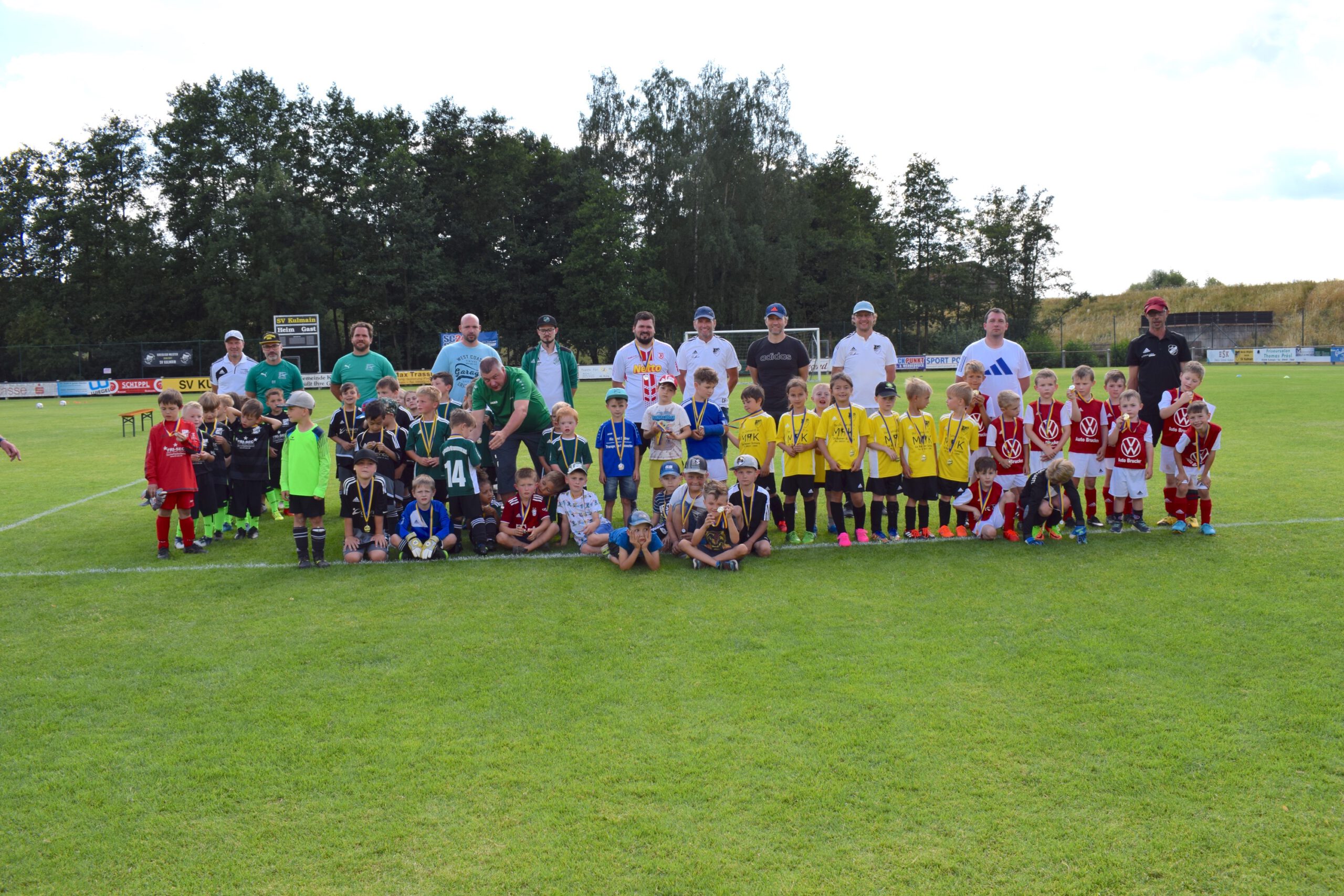 Im G‑Juniorenturnier der Jahrgänge 2015 und jünger standen sich am Samstagnachmittag mit einer Spielzeit von je zwölf Minuten mit der Besetzung ein Torwart und sechs Feldspieler in der Gruppe A die Mannschaften des SV Kulmain, TSV 1960 Kastl, SG TSV Reuth/TSV Krummennaab und in der Gruppe B der TSV Pressath, FC Weiden Ost und des SV TuS / DJK Grafenwöhr gegenüber. Die Gruppe A dominierte der TSV Kastl mit Siegen über Gastgeber Kulmain (9:0) und der SG TSV Reuth/TSV Krummennaab (2:0). Platz zwei belegte die SG TSV Reuth/TSV Krummennaab mit einem 2:6 Erfolg über den SV Kulmain. Den ersten Platz in der Gruppe B sicherte sich der FC Weiden Ost mit Erfolgen über den TSV Pressath (8:1) und SV TuS / DJK Grafenwöhr (7:0). In den beiden Halbfinalspielen setzte sich der TSV Kastl mit einem 3:0‑Erfolg gegen Pressath und die SG TSV Reuth/TSV Krummennaab mit einem knappen 4:3‑Sieg über den FC Weiden Ost durch. Mit einem 2:0‑Erfolg über den SV Kulmain beendete der SV TuS / DJK Grafenwöhr das Turnier mit Platz 5. Im Spiel um Platz drei behielt der FC Weiden Ost mit einem engen 1:0‑Erfolg über Pressath die Oberhand. Den Turniersieg sicherte sich der TSV Kastl mit 3:1 Toren gegen die SG TSV Reuth/TSV Krummennaab. Die Siegermannschaften dürfen sich auf einen dreistündigen Mannschaftausflug nach Mehlmeisel freuen. Dort nehmen sie an einer Waldpädagogischen Führung des Amtes für Ernährung, Landwirtschaft und Forsten Bayreuth-Münchberg teil.