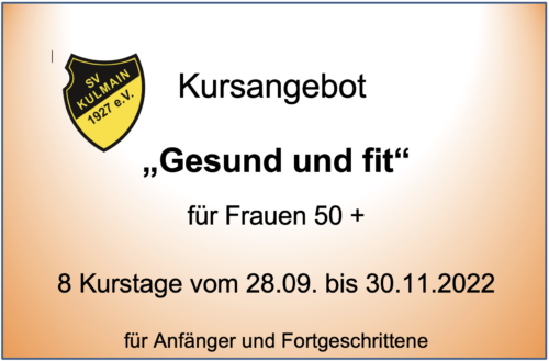 Der Kurs für Anfänger und Fortgeschrittene dauert acht Übungstage, beginnend am 28. September bis 30. November. Beginn jeweils mittwochs ist um 19 Uhr in der Schulturnhalle Kulmain. Nichtmitglieder des SV Kulmain zahlen 35 Euro inklusive BLSV-Versicherungsschutz. Die Teilnahme von SV-Vereinsmitgliedern ist frei. Anmeldungen sind bis zum 21. September per Email an turnen@svkulmain.de oder telefonisch an 0160 91897103 zu richten.