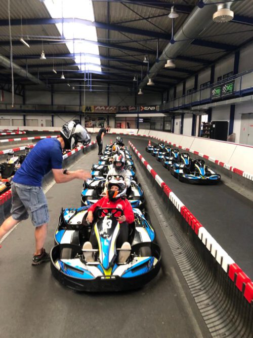 Nach einer kurzen Verschnaufpause entschloss man sich gemeinsam noch zum nahegelegenen ProKart-Raceland zu fahren und dort einige sportliche Runden auf der Indoor-Kartbahn zu drehen. Eine perfekte und sportlich mal etwas andere Betätigung, die von allen begeistert und mit einem breiten Grinsen im Gesicht souverän gemeistert wurde. Nachdem nun bei fast allen die “letzten Körner” verbrannt waren ging es dem Heimweg noch zur Stärkung in einen durchaus bekannten “Schnellimbiss” und gut begleitet von den drei Fahrern wieder gegen 18 Uhr nach Hause zum Ausruhen und Kräfte tanken.
