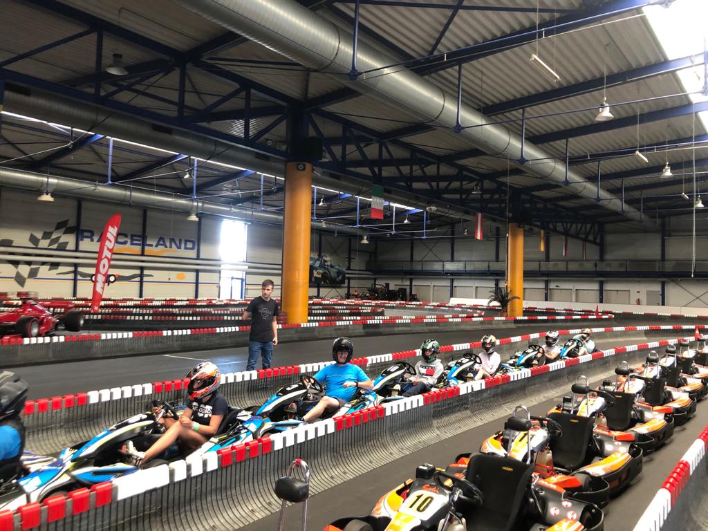 Nach einer kurzen Verschnaufpause entschloss man sich gemeinsam noch zum nahegelegenen ProKart-Raceland zu fahren und dort einige sportliche Runden auf der Indoor-Kartbahn zu drehen. Eine perfekte und sportlich mal etwas andere Betätigung, die von allen begeistert und mit einem breiten Grinsen im Gesicht souverän gemeistert wurde. Nachdem nun bei fast allen die “letzten Körner” verbrannt waren ging es dem Heimweg noch zur Stärkung in einen durchaus bekannten “Schnellimbiss” und gut begleitet von den drei Fahrern wieder gegen 18 Uhr nach Hause zum Ausruhen und Kräfte tanken.