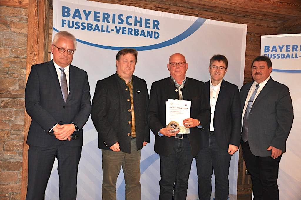 Beim BFV-Ehrenamtstag in Arnschwang bei Furth im Wald wurde ihnen von Kreisehrenamtsbeauftragten Roman Melzner (Immenreuth) zusammen mit Bezirksehrenamtsreferent Reinhard Rengsberger und Kreisvorsitzenden Albert Kellner für ihr jahrzehntelanges ehrenamtliches Engagement die höchste Auszeichnung samt Urkunde verliehen, die der Deutsche Fußballbund seit 25 Jahren an verdiente Vereinsmitarbeiter zu vergeben hat. „Euer Ehrenamt trägt den Fußball“, betonte Kreisspielleiter Albert Kellner.