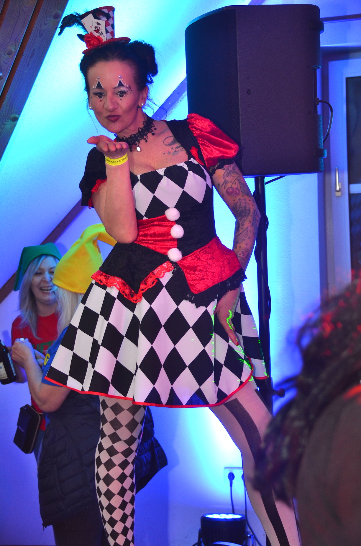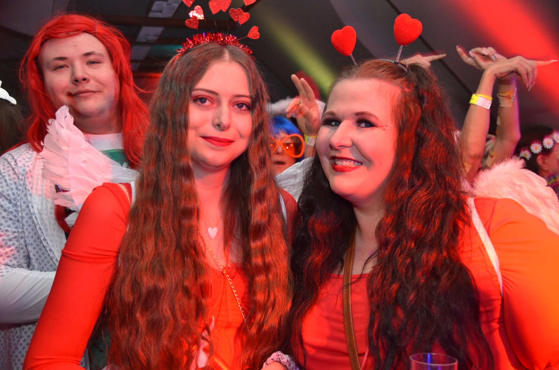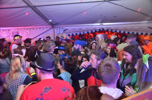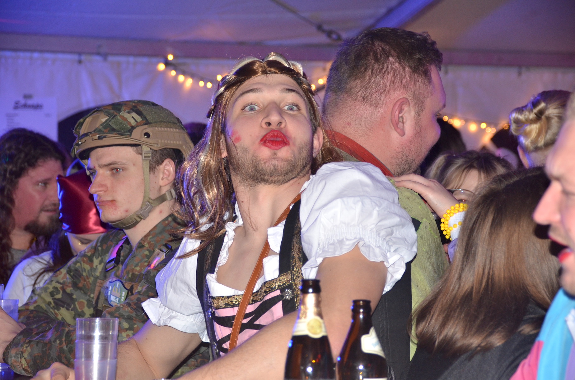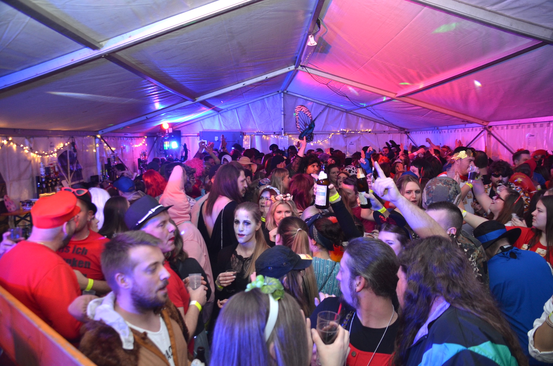Proppenvoll waren die drei beheizten Partyzelte. Für die keineswegs etwas „ruhigeren Weiberleit“ hatte der SV zusätzliche Partyflächen in einer zweiten Partymeile im Mehrzweckraum geschaffen, die ebenfalls proppevoll war. Eine enorme Zahl von ideenreichen Masken auf beiden Ebenen sorgten für die absolut passende Faschingsstimmung. Eine Polonaise nach der anderen schlängelte sich bei traditioneller Faschingsmusik durch‘s Obergeschoss, es wurde auf und neben den Tischen getanzt. Im Mehrzweckraum sorgte DJ AD RED für perfekte Unterhaltung für die nur anscheinend etwas „Gesetzteren“. Schunkelrunden, Polonaisen, Schlager und aktuelle Hits ließen im oberen Tanzsaal mit Cocktailbar die Weiberwelt nicht locker und die Tanzfläche beben.