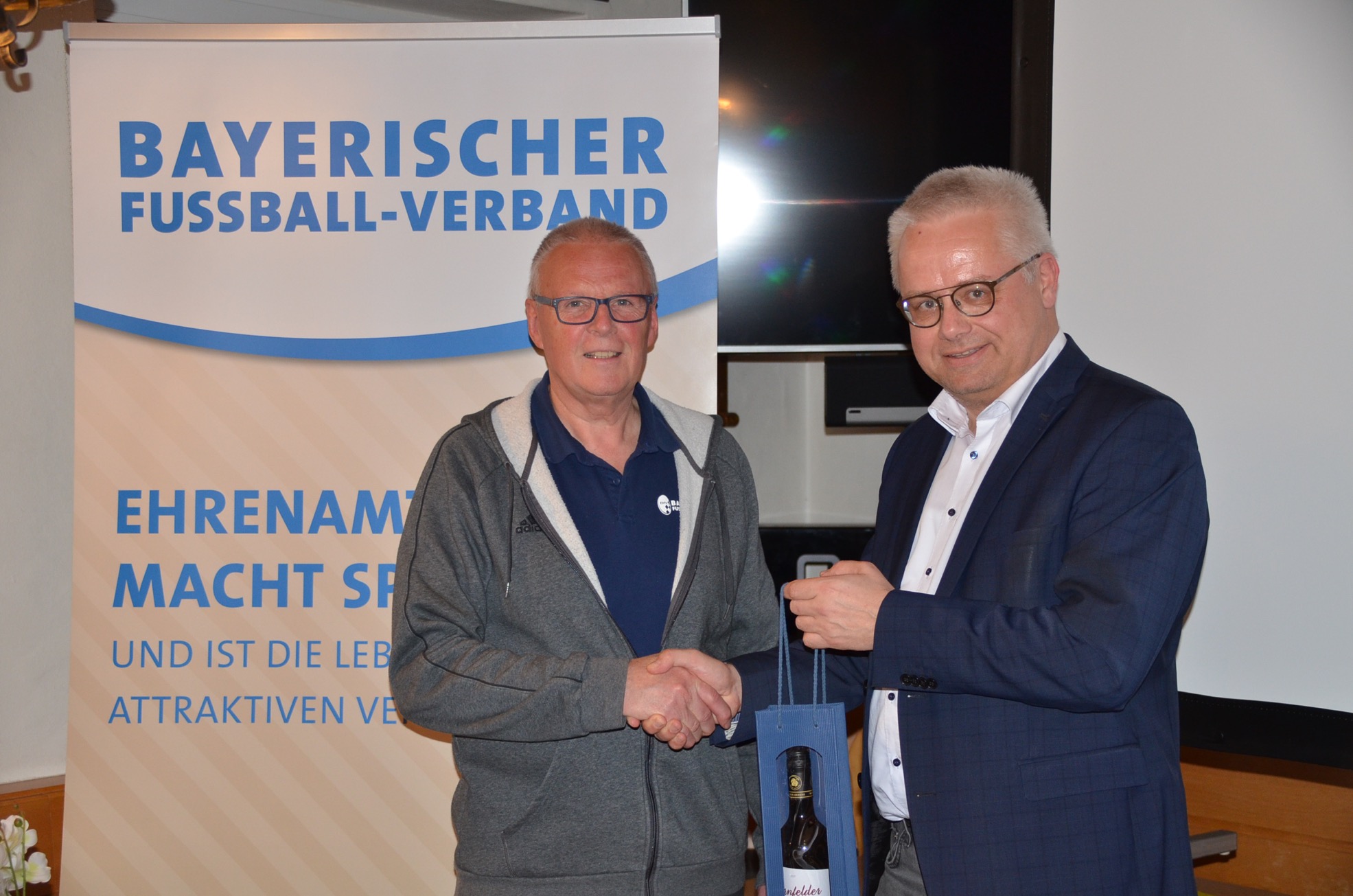 Melzner bedankte sich mit einem Weinpräsent beim Referenten für den informativen Inhalt des Workshops. Die Teilnehmerrunde nutzte das Treffen für den Gedanken- und Erfahrungsaustausch und um Neuigkeiten aus dem Bereich BFV-Ehrungen und Antragstellung zu erfahren.