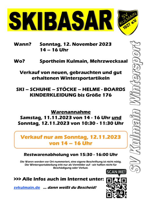 Wir öffnen auch dieses Jahr am Sonntag, 12. Nov. 2023 unseren Skibasar und bieten wieder zahlreiche Artikel zum Verkauf bei zu äußerst fairen Preisen an.