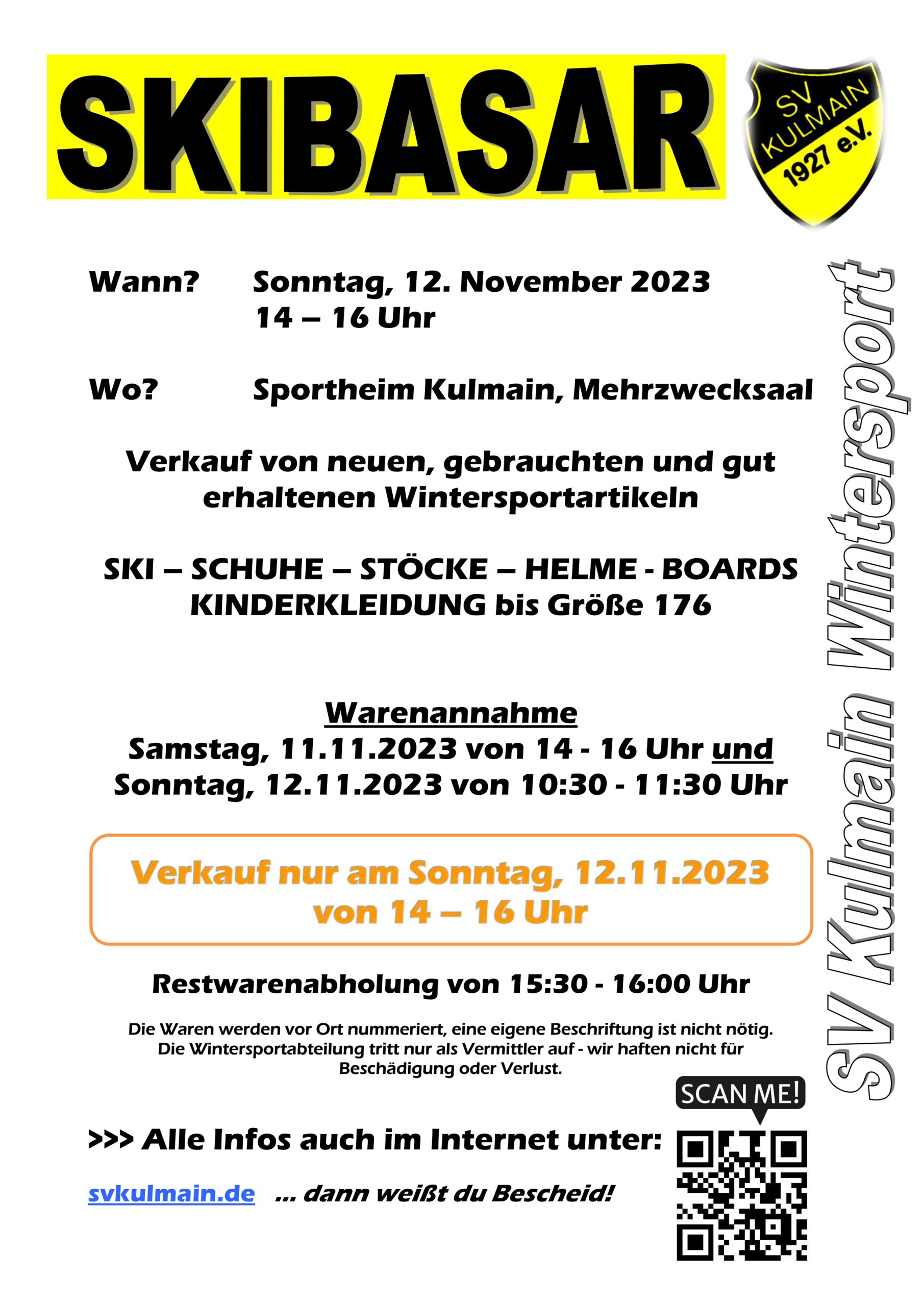 Wir öffnen auch dieses Jahr am Sonntag, 12. Nov. 2023 unseren Skibasar und bieten wieder zahlreiche Artikel zum Verkauf bei zu äußerst fairen Preisen an.
