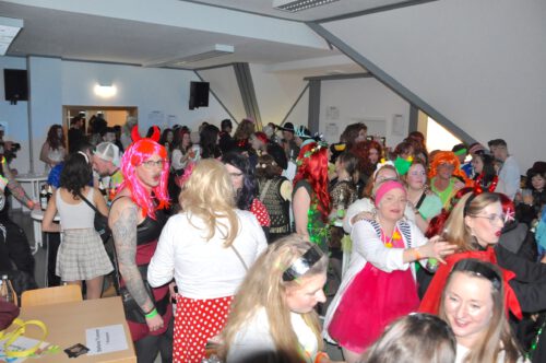 Proppenvoll waren die drei beheizten Partyzelte. Für die keineswegs etwas „ruhigeren Weiberleit“ hatte der SV zusätzliche Partyflächen auf der zweiten Partyebene im Mehrzweckraum geschaffen, die ebenfalls proppenvoll war. Eine enorme Zahl von ideenreichen Masken in beiden Partyarenas sorgten für die absolut passende Faschingsstimmung. Eine Polonaise nach der anderen schlängelte sich bei traditioneller Faschingsmusik durch’s Obergeschoss, es wurde auf und neben den Tischen getanzt. Im Mehrzweckraum sorgte DJ AD RED für perfekte Unterhaltung für die nur anscheinend etwas „Gesetzteren“. Schunkelrunden, Polonaisen, Schlager und aktuelle Hits ließen im oberen Tanzsaal mit Cocktailbar die Weiberwelt nicht locker und die Tanzfläche beben.