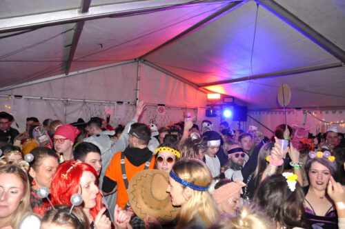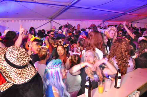 Ab 19 Uhr bis Richtung Mitternacht füllten sich die Partyzelte und der zur Tanzzone erklärte Mehrzweckraum des Sportheimes stetig. Der Faschingszug war vollbesetzt und raste in Richtung Station „Gaudiwahnsinn“ auf der SV-Partymeile immer schneller. Man merkte es den Besuchern an, dass die Gaudimeute richtig Bock auf Faschingsgaudi hatte.