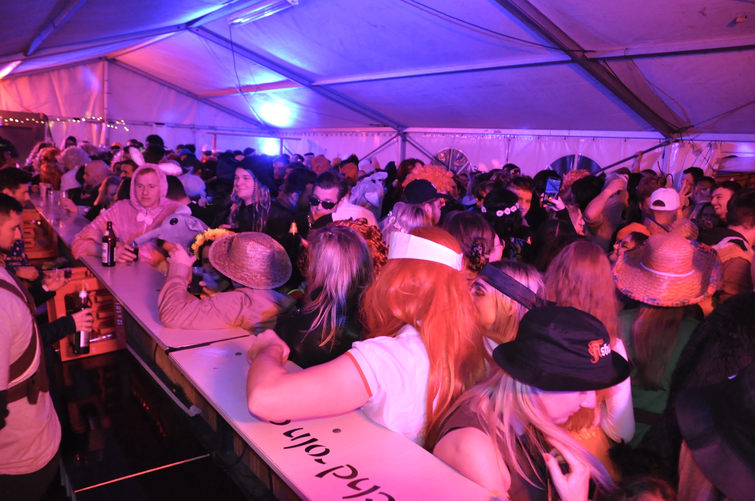 Ab 19 Uhr bis Richtung Mitternacht füllten sich die Partyzelte und der zur Tanzzone erklärte Mehrzweckraum des Sportheimes stetig. Der Faschingszug war vollbesetzt und raste in Richtung Station „Gaudiwahnsinn“ auf der SV-Partymeile immer schneller. Man merkte es den Besuchern an, dass die Gaudimeute richtig Bock auf Faschingsgaudi hatte.