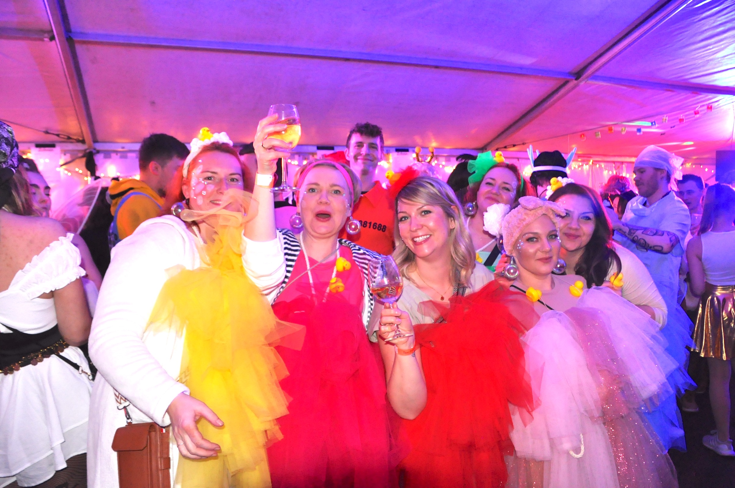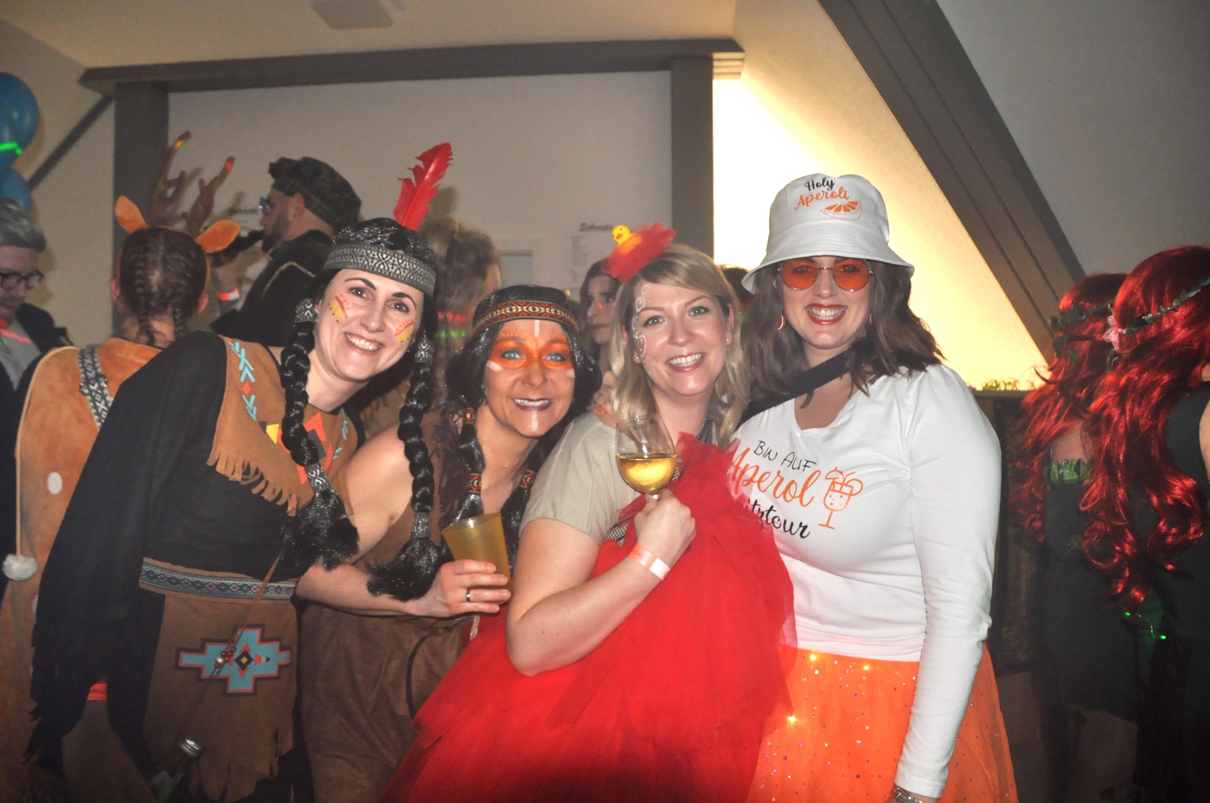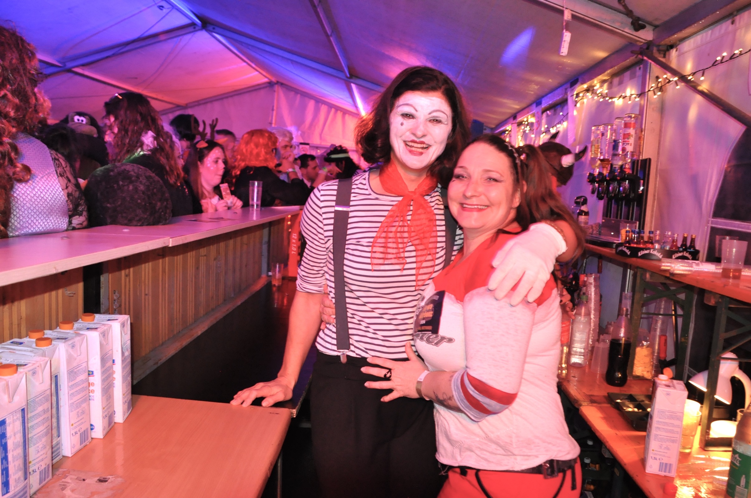 Proppenvoll waren die drei beheizten Partyzelte. Für die keineswegs etwas „ruhigeren Weiberleit“ hatte der SV zusätzliche Partyflächen auf der zweiten Partyebene im Mehrzweckraum geschaffen, die ebenfalls proppenvoll war. Eine enorme Zahl von ideenreichen Masken in beiden Partyarenas sorgten für die absolut passende Faschingsstimmung. Eine Polonaise nach der anderen schlängelte sich bei traditioneller Faschingsmusik durch’s Obergeschoss, es wurde auf und neben den Tischen getanzt. Im Mehrzweckraum sorgte DJ AD RED für perfekte Unterhaltung für die nur anscheinend etwas „Gesetzteren“. Schunkelrunden, Polonaisen, Schlager und aktuelle Hits ließen im oberen Tanzsaal mit Cocktailbar die Weiberwelt nicht locker und die Tanzfläche beben.
