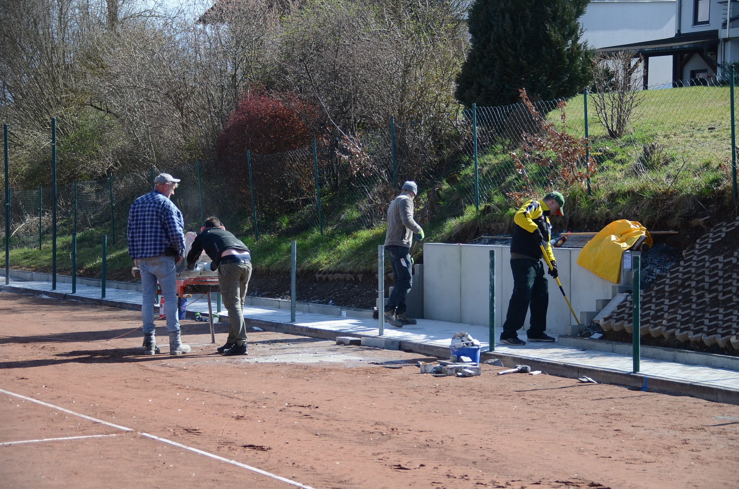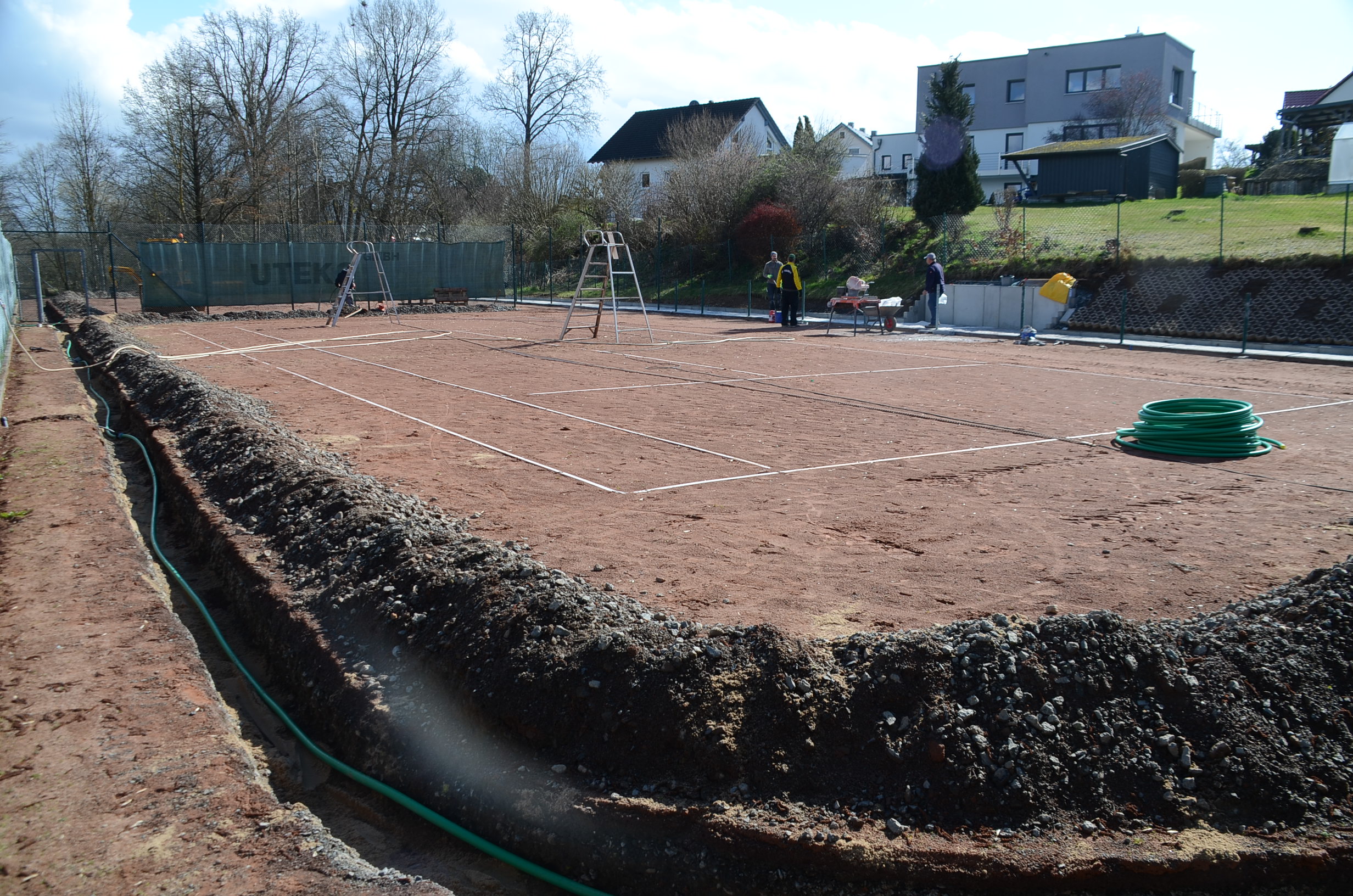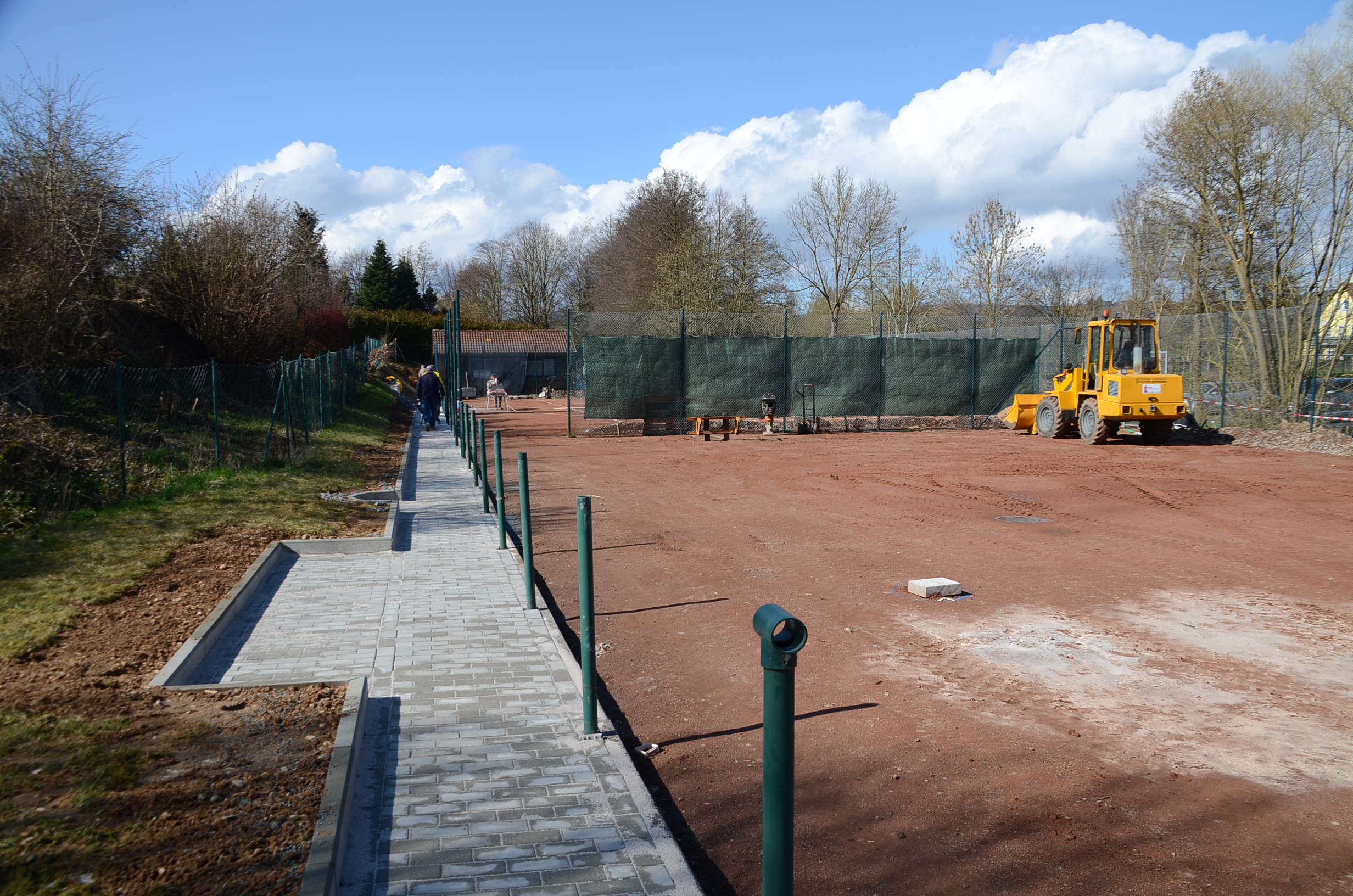 Mit vereinten Kräften wurde der an den beiden Spielfeldern vorbeiführende Gehweg komplett in Eigenleistung verbreitert, neu gepflastert und Nischen im Hangbereich mittels L‑Steinen angelegt. Der Durchgang hinter der Tennishütte musste zwecks Durchfahrtsmöglichkeit mittels Schubkarren und besserer Begehbarkeit verbreitert werden. Es wurden bewehrte Betonelemente eingebaut. Derzeit wird eine neue automatische Beregnungsanlage für beide Tennisplätze in Eigenleistung eingebaut. Sobald diese im Grundbau erforderlichen Arbeiten abgeschlossen sind, wird die Tennissparte in Eigenleistung den Oberbelag samt Linierung in Ziegelmehlaufbau auf beiden Plätzen in Angriff nehmen.