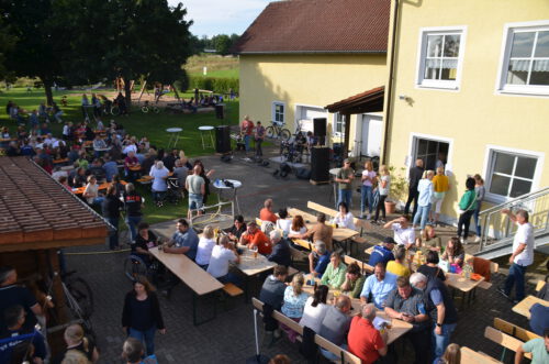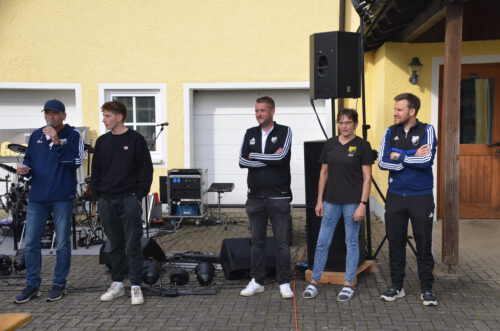 1. Vorsitzender Wolfgang Groß und Festausschussleiter Tobias Müller hießen rund 20 der insgesamt 36 zu Ehrenden unter bewölkten Himmel willkommen. „Ihr beweist, dass Vereinstreue nicht auf eigenem Nutzen beruht, sondern auf ideeller Verbindung zum SV Kulmain. Viele von Euch waren nicht nur passiv Mitglied, sondern über Jahre hinweg aktive Sportler, Ehrenamtliche und bereitwillige Helfer beim Aufbau des SV und Fortführen unserer Vereinsziele Breiten- und Leistungssport. Mit dieser Ehrung bekunden wir unseren Respekt für Euer Engagement“, erklärte des SV-Vorsitzende. Zusammen mit Müller nahm er die Ehrungen für langjährige Mitgliedschaft mit Nennung ihrer sportlichen und ehrenamtlichen Verdienste für folgende SV Mitglieder vor: