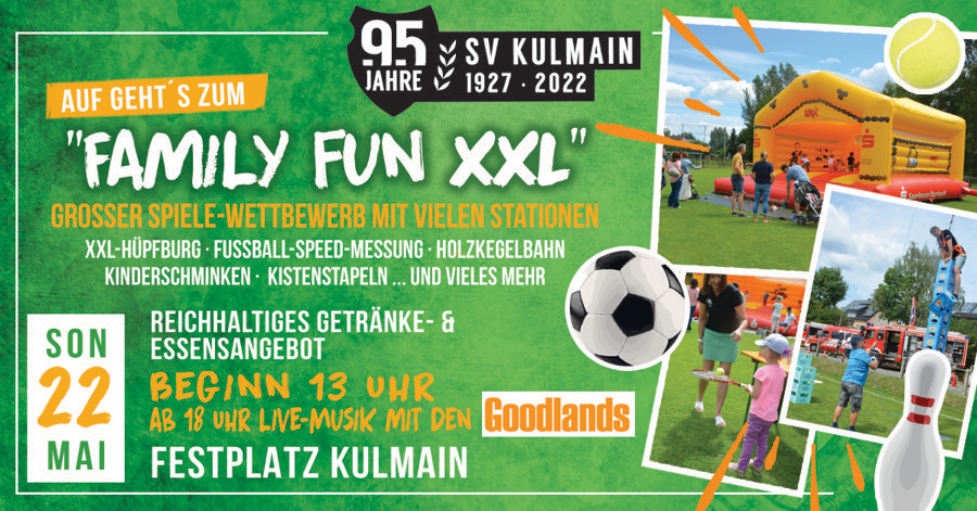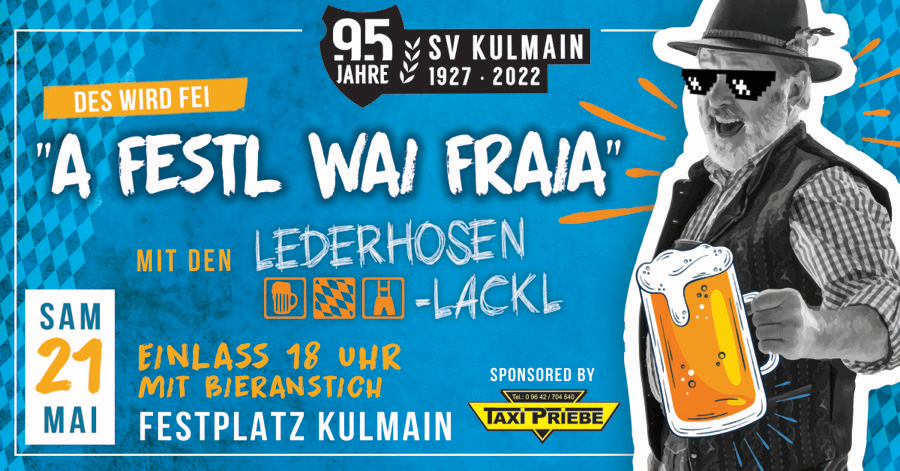 Der SV Kulmain feiert am Wochenende 21. und 22. Mai 2022 sein 95jähriges Jubiläum! Seid unsere Gäste!