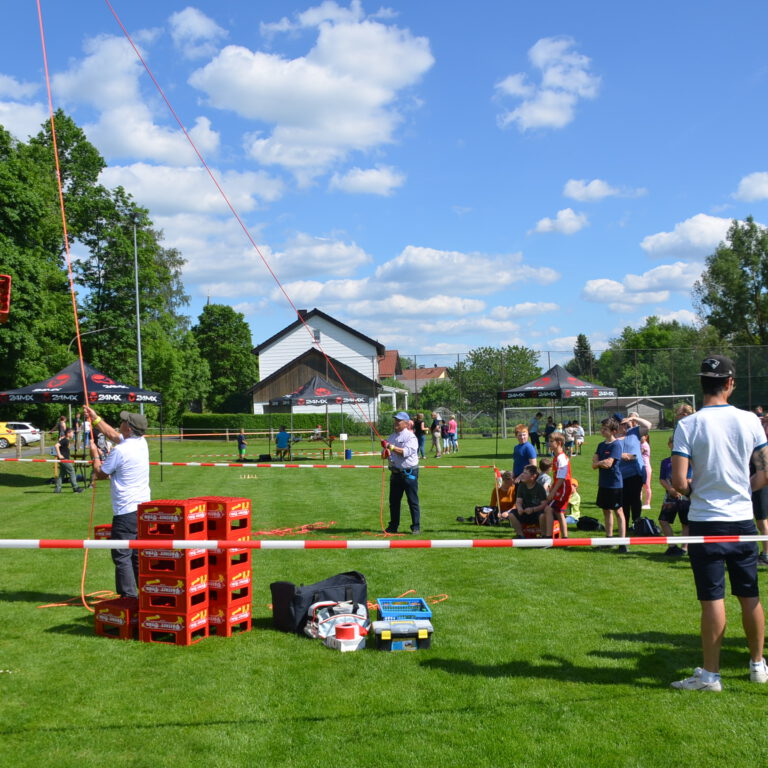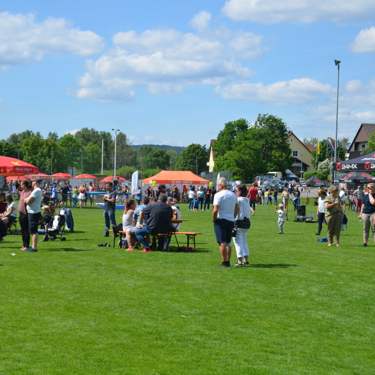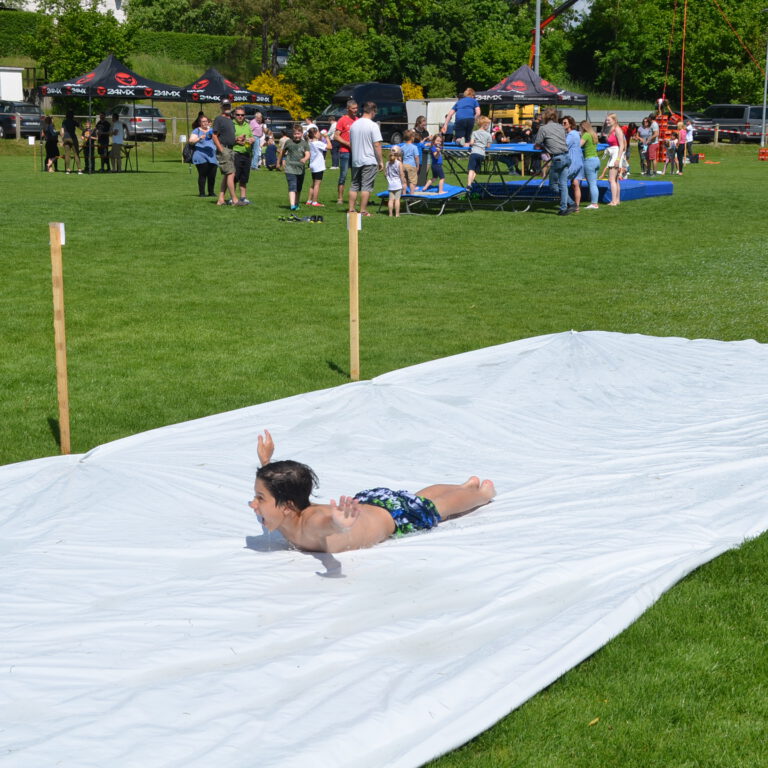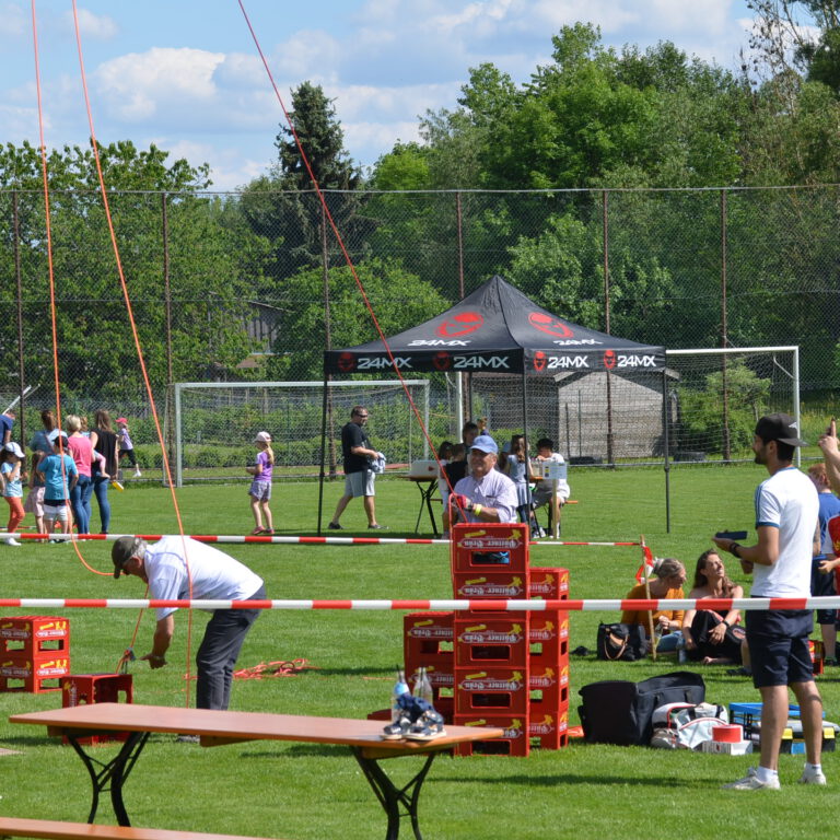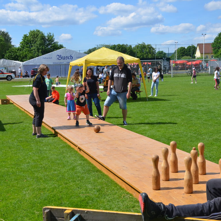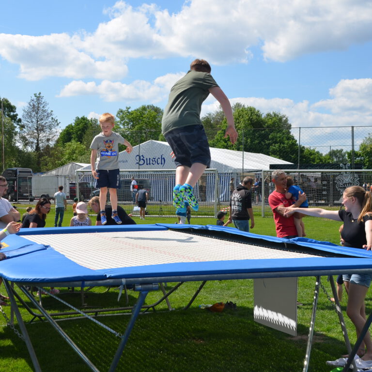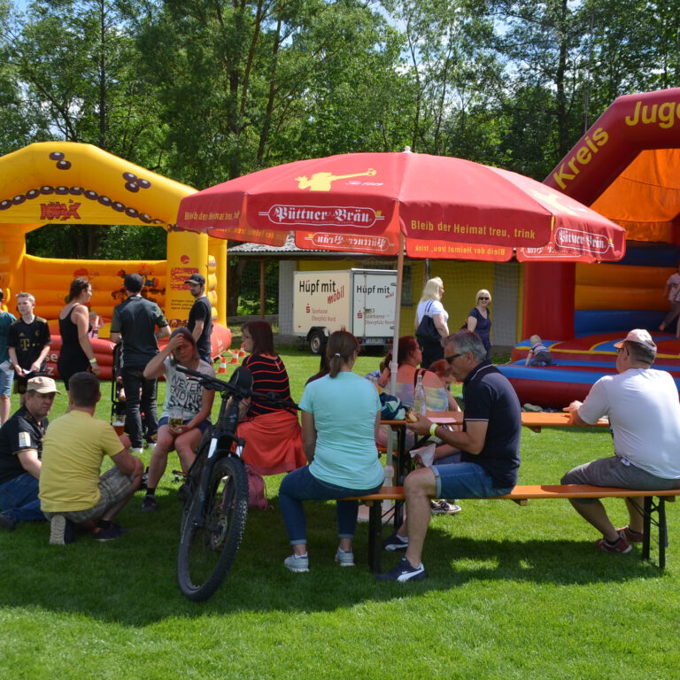 Spiele-Wettbewerb mit vielen Stationen, Riesen-Hüpfburg, Fußball-Speed-Messung, Holzkegelbahn, Kinderschminken, Kistenstapeln, Mega-Wasserrutsche und vielem mehr!